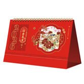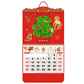 • 特度對開中國紅金雕窗花掛歷